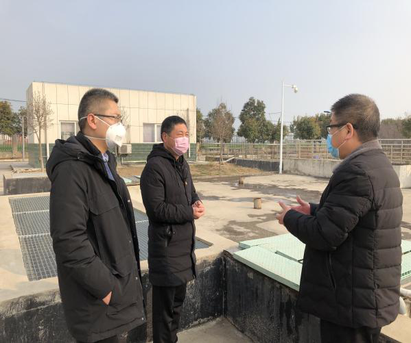 2月8日下午,臨潁縣城市管理局主管副局長滕衛兵一行三人對臨潁污水處理廠肺炎疫情防控工作進行檢查指導。滕局長首先對藥劑投加間及消毒池進行了查看,詳細了解二氧化氯制配及投加過程,提出要加強污水處理廠的消毒工作,確保消毒劑投加正常,出水糞大腸菌群數指標達到《城鎮污水處理廠污染排放標準》要求,做好剩余污泥的運輸與處置工作,防止病毒擴散。同時建議合理安排員工生產班次,避免人員扎堆現象,加強員工個人安全防護措施,對每天值班人員進行測溫登記,一旦發現有人員發燒、咳嗽等癥狀,要及時安排就診并上報。最后,滕局長還對消毒劑及酒精在使用過程中要注意的事項進行了強調,并希望大家做好自好防護,共同渡過此次疫情。