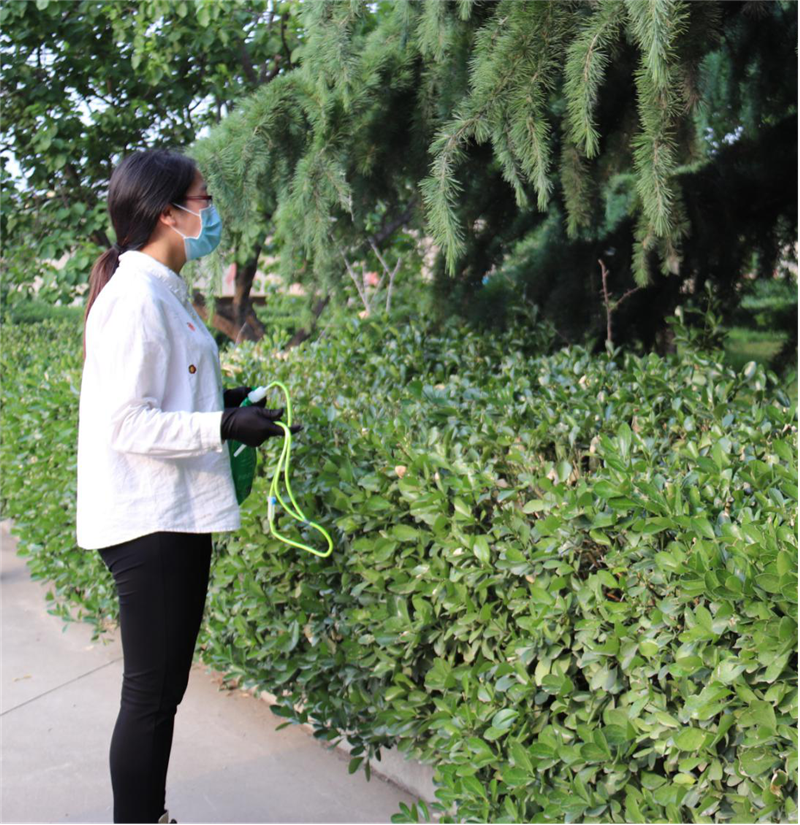 面對鑒證了商丘廠風雨20年成長歷程的兩棵“老”松樹的健康問題,廠長潘紅霞及時請來商丘師范學院植物學專家蒞臨現場研究診治。經專家指導,綜合部綠化隊相關人員馬上展開搶救行動,給樹木打頂,鋸掉枯枝弱枝,以保證主干的營養供給。同時購買了富含多種微量元素的植物營養液,為樹木“打針輸液”。